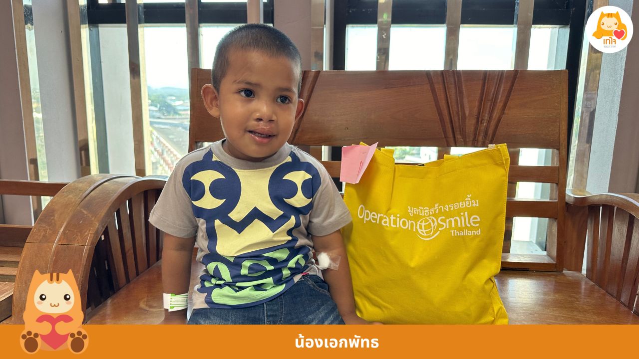 " ผมขอขอบคุณผู้ใหญ่ใจดีที่มอบกระเป๋าสร้างรอยยิ้ม ให้ผมได้ใช้ระหว่างผ่าตัดมากๆ ครับ " น้องเอกพัชร