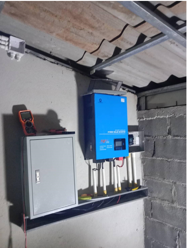 ภาพ :ช่างทำการติดตั้งอุปกรณ์โซล่าเซลล์และอุปกรณ์ให้ความสว่างภายในอาคารเรียน