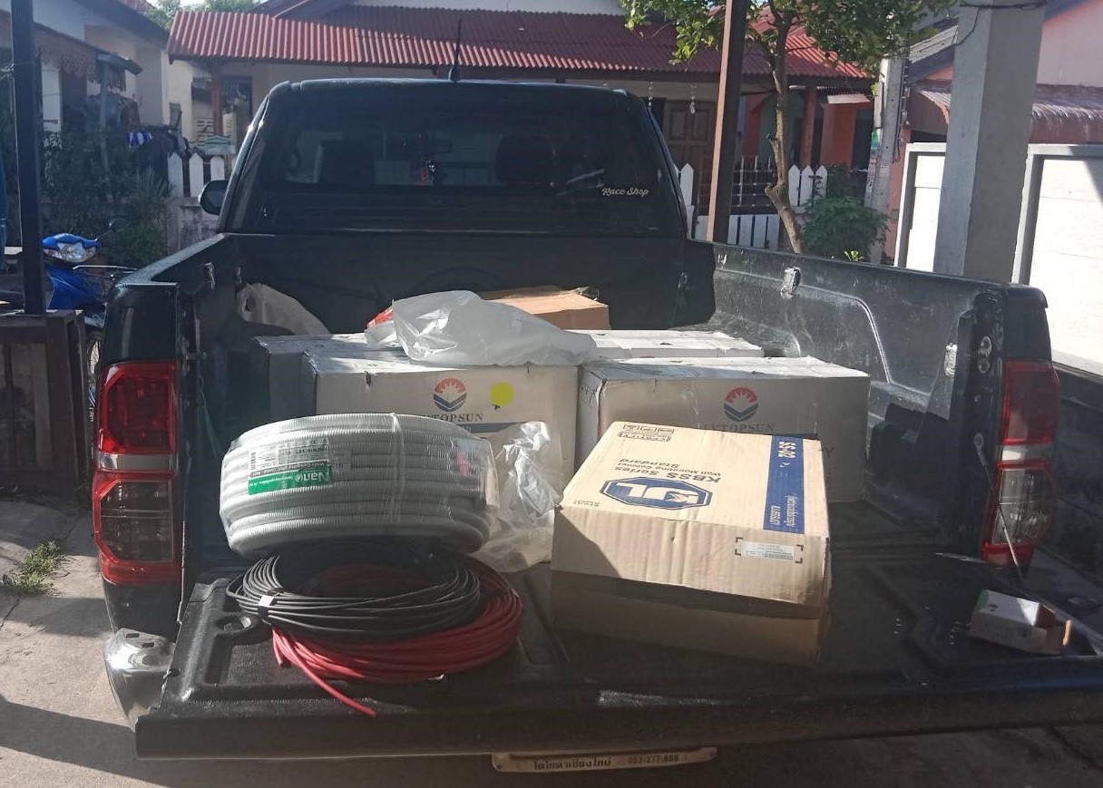 ภาพ : อุปกรณ์ไฟฟ้าต่างๆเริ่มทยอยมาส่ง ครูและนักเรียนช่วยกันติดตั้งอุปกรณ์ไฟฟ้าต่างๆ